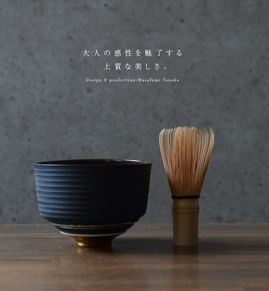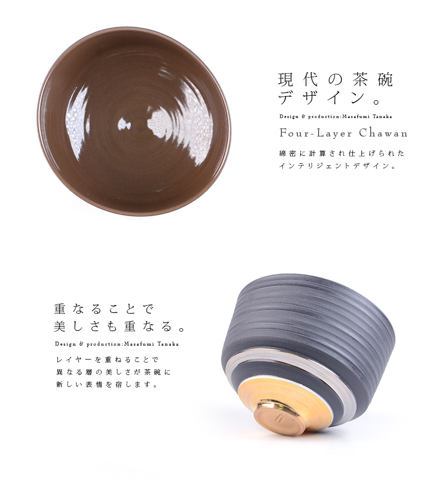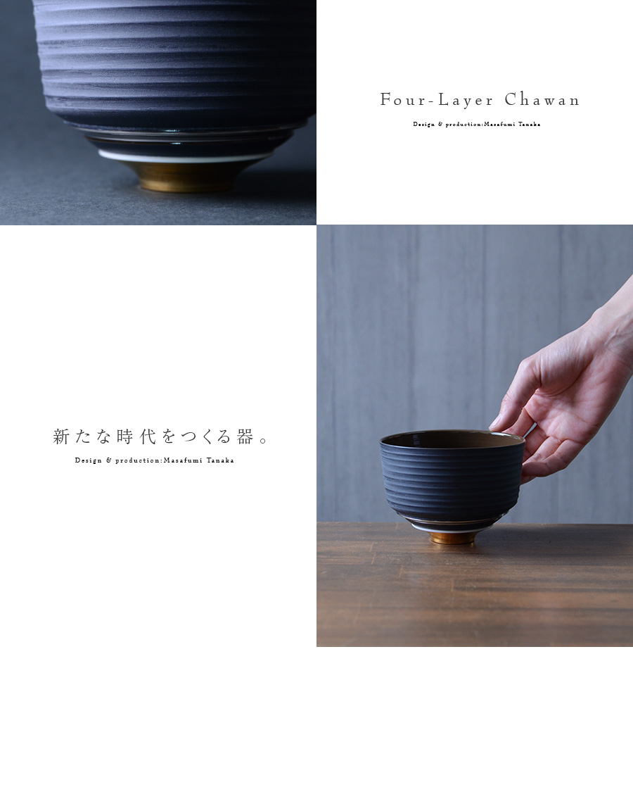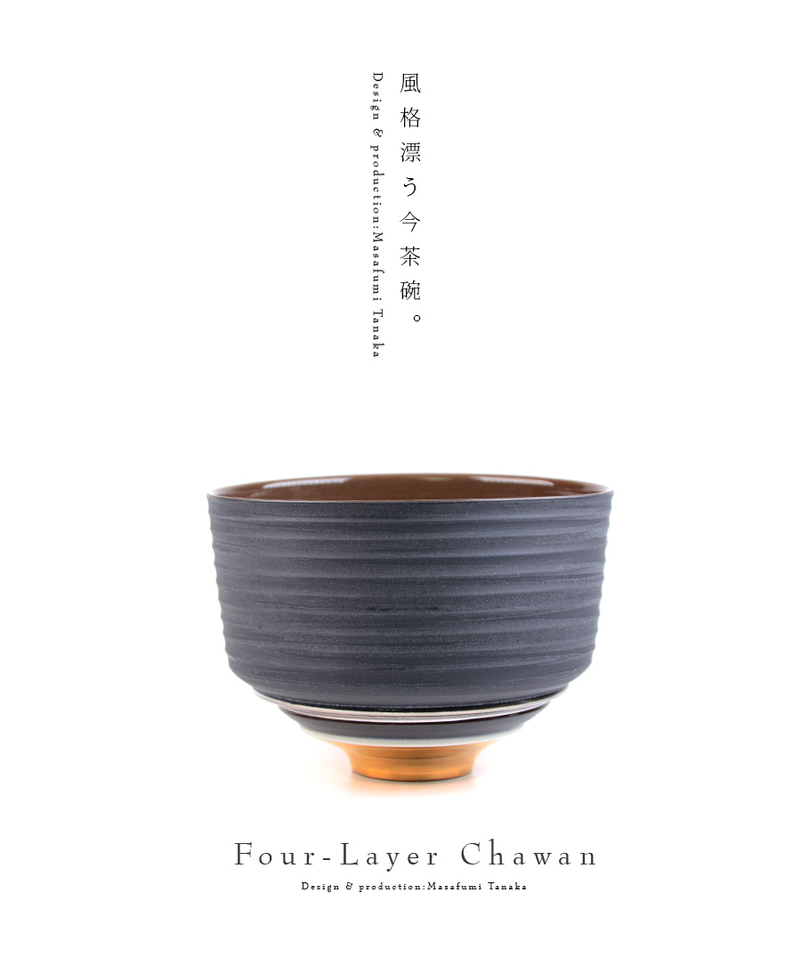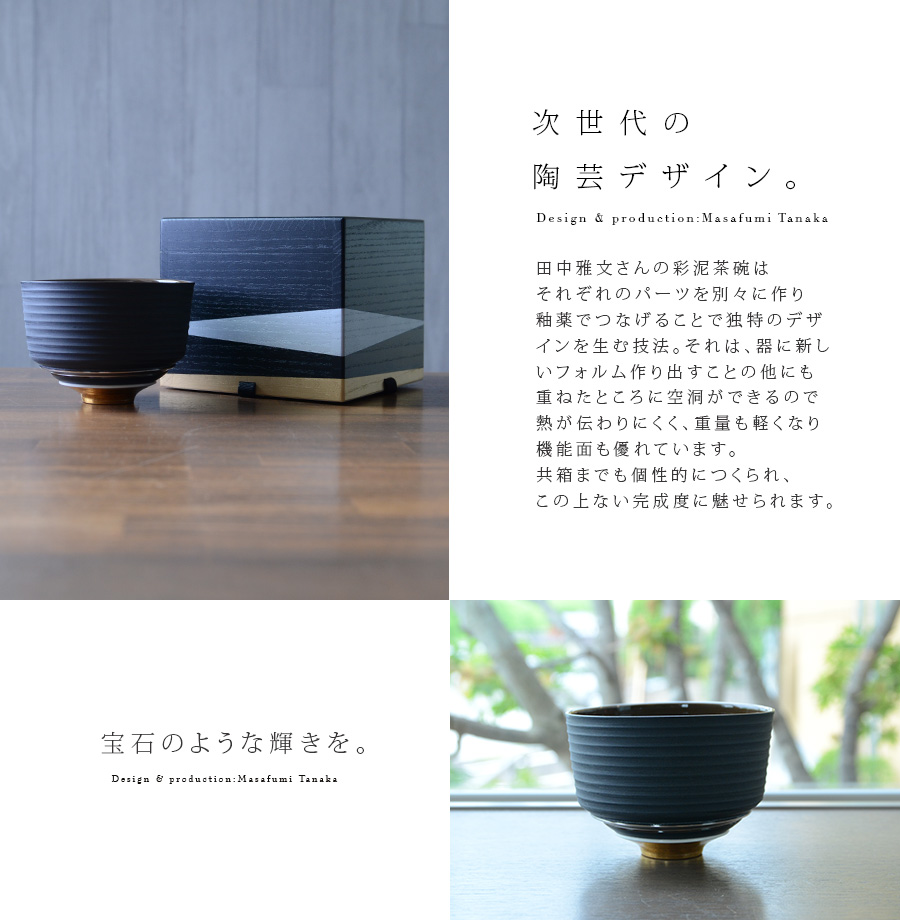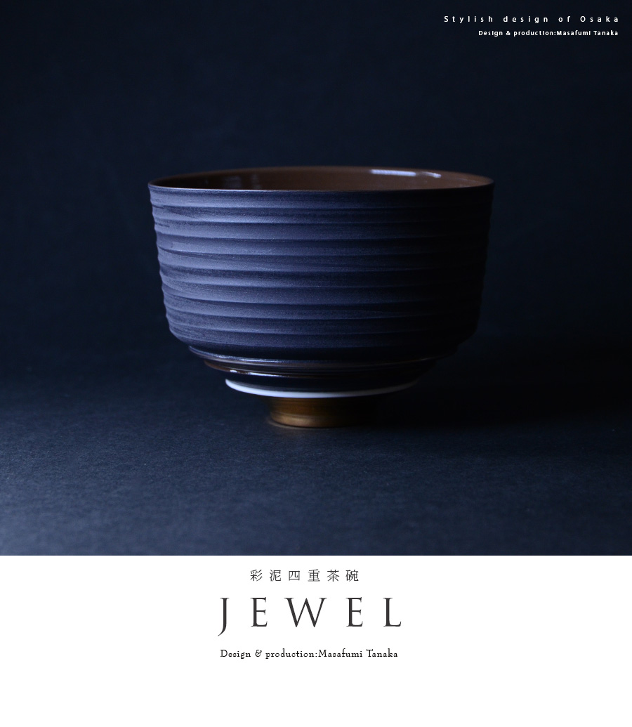 大阪で作陶する田中雅文さんの彩泥四重茶碗「JEWL”ブラック”」。