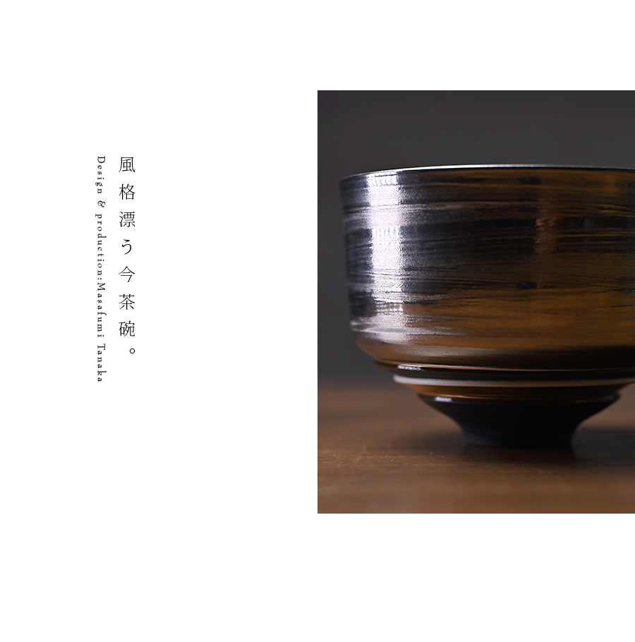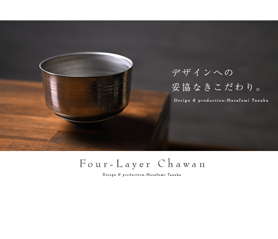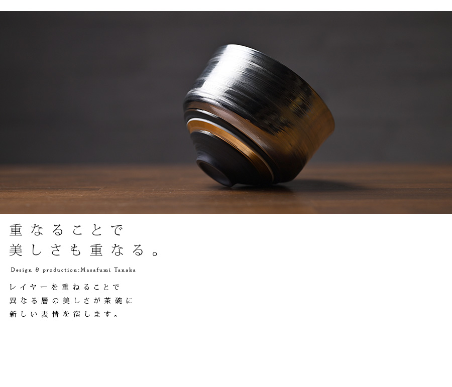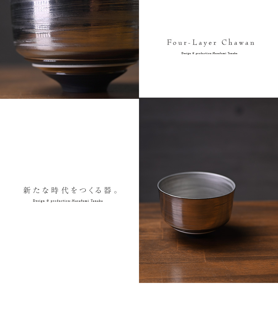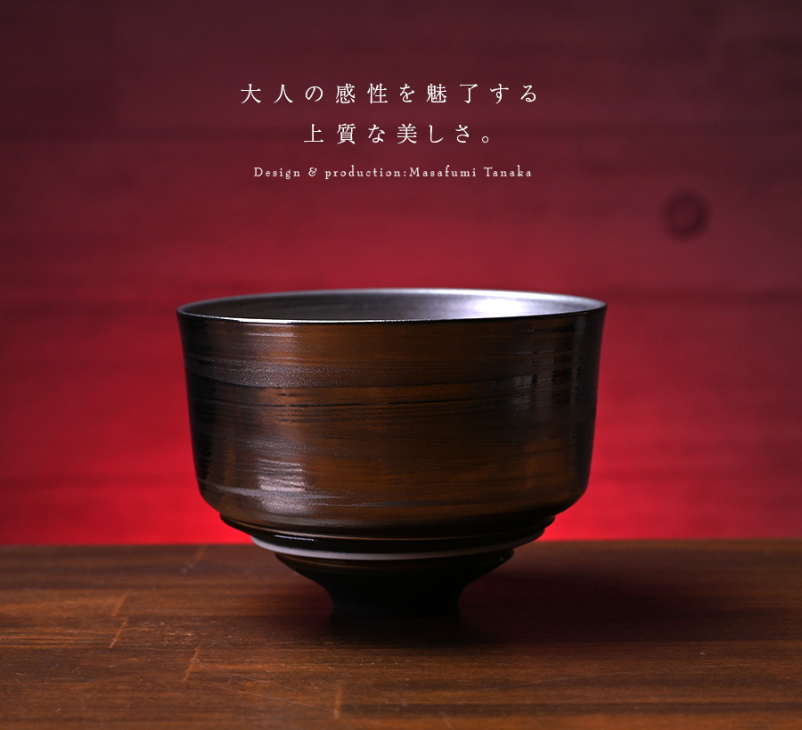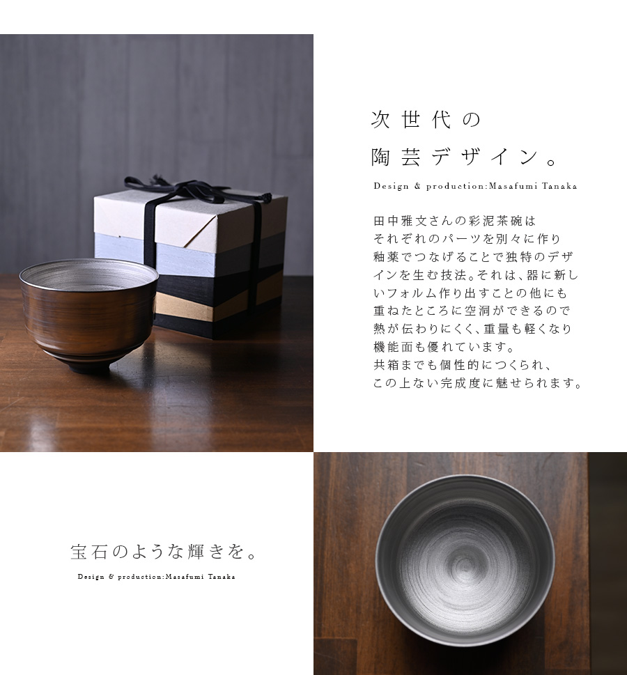 大阪で作陶する田中雅文さんの彩泥四重茶碗「JEWEL”プラチナ”」。