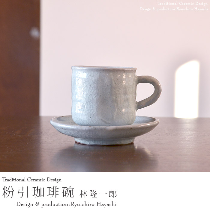 作陶する林隆一郎さんの美濃粉引デザイン。