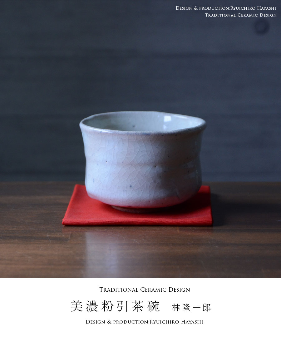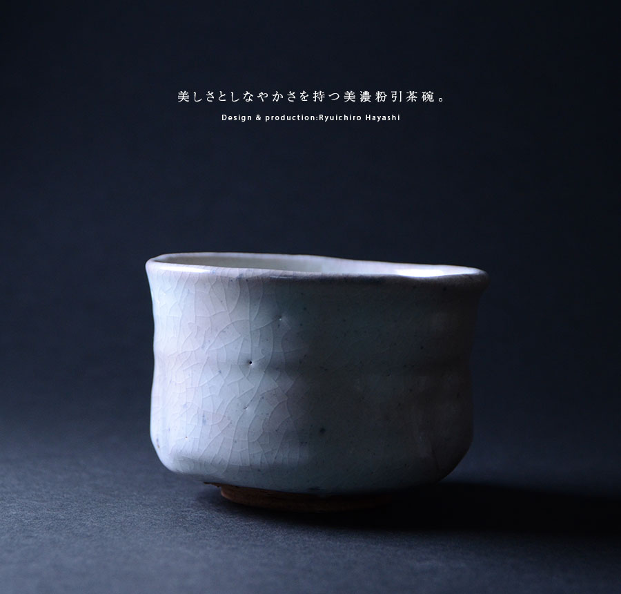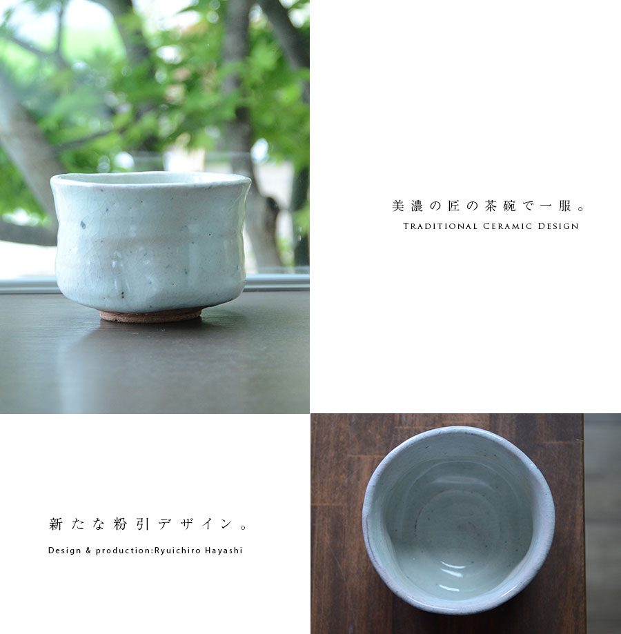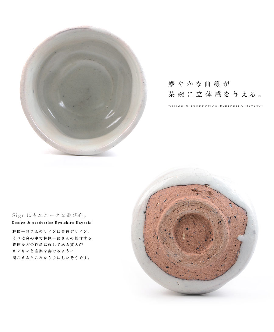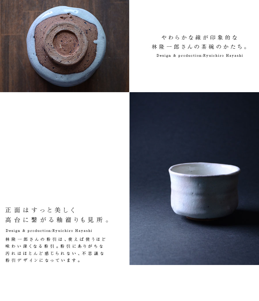 作陶する林隆一郎さんの粉引茶碗。