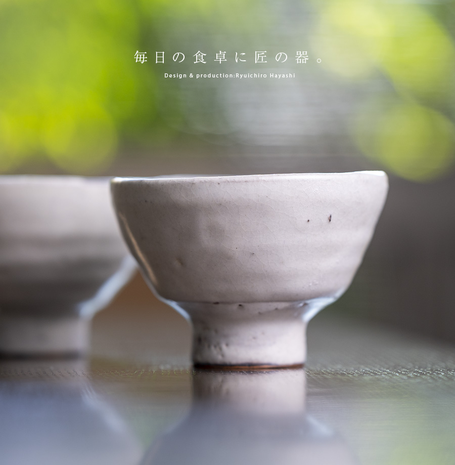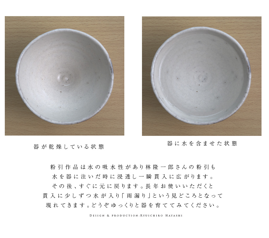 作陶する林隆一郎さんの白口井戸形汲出湯呑。