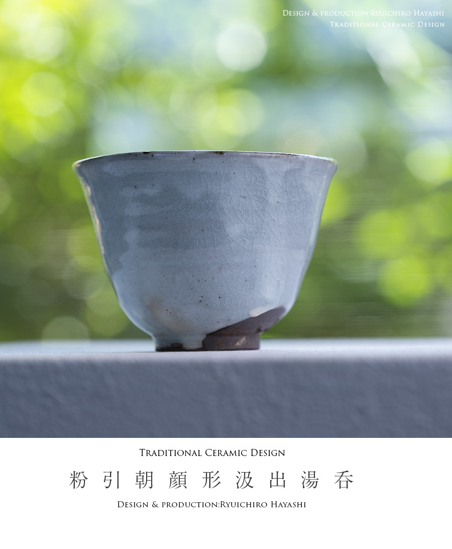 育てながら楽しむ美しい粉引朝顔形汲出湯呑。