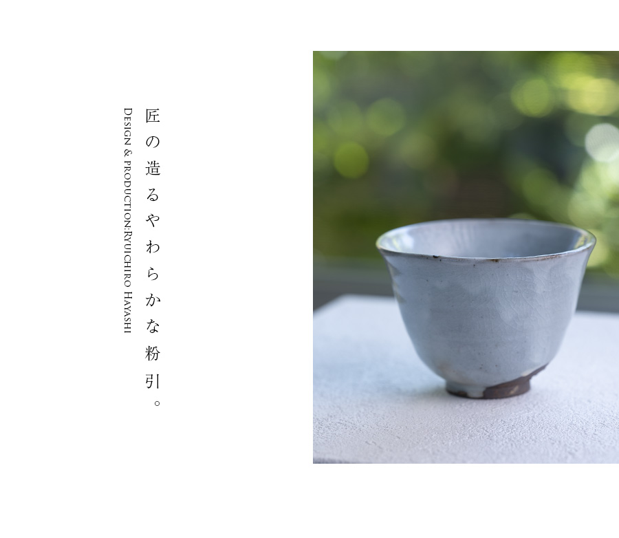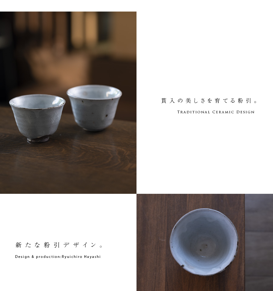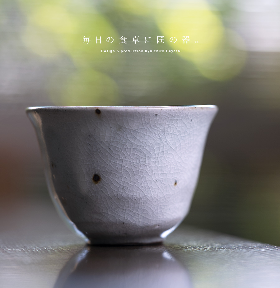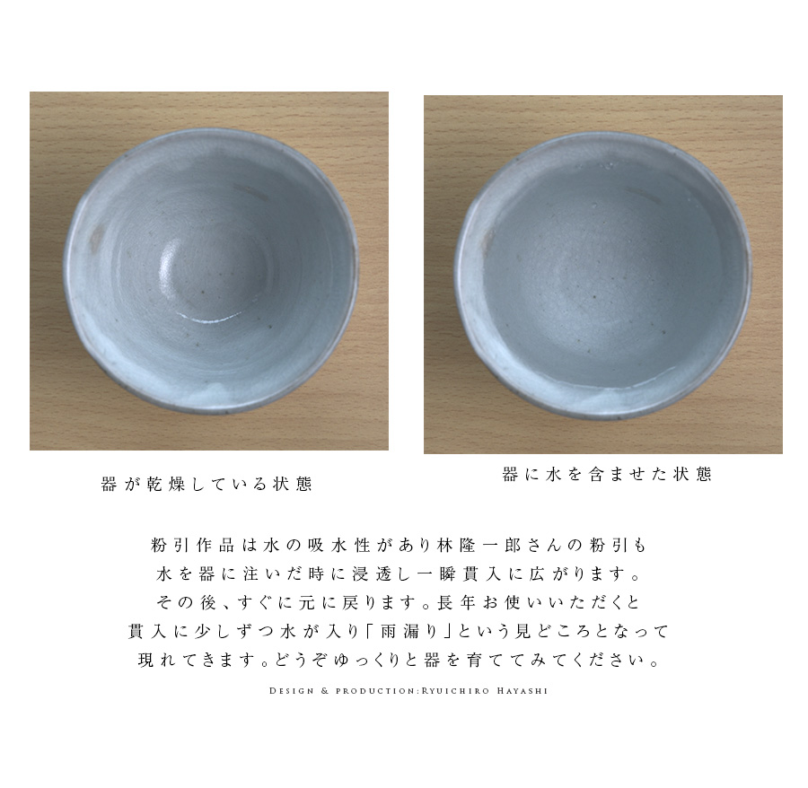 作陶する林隆一郎さんの粉引朝顔形汲出湯呑。