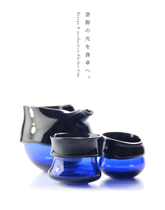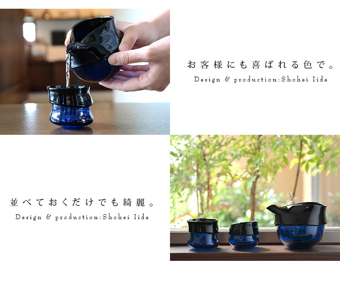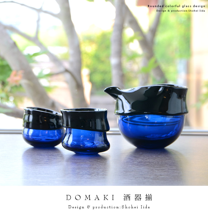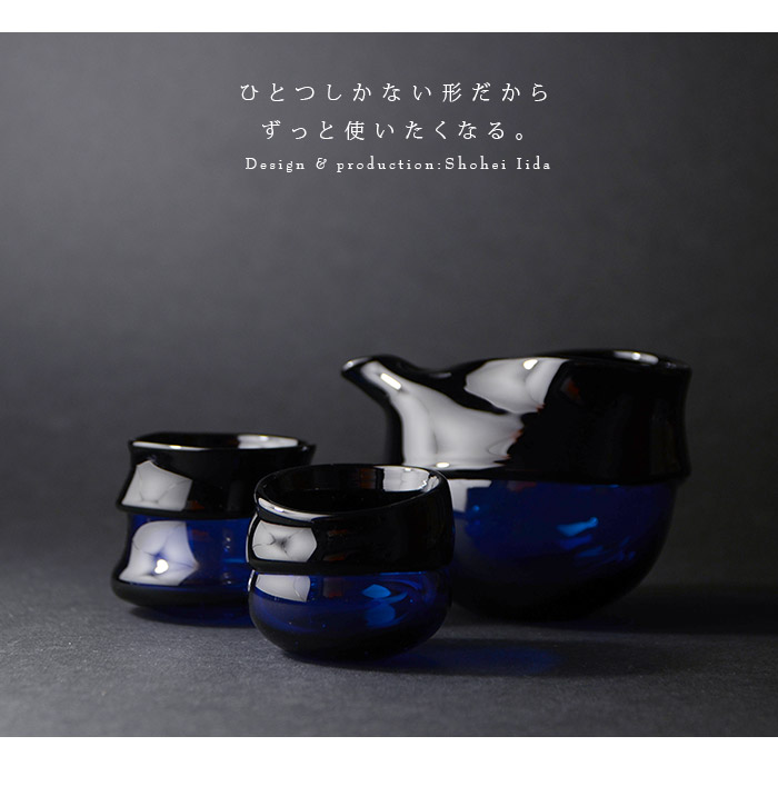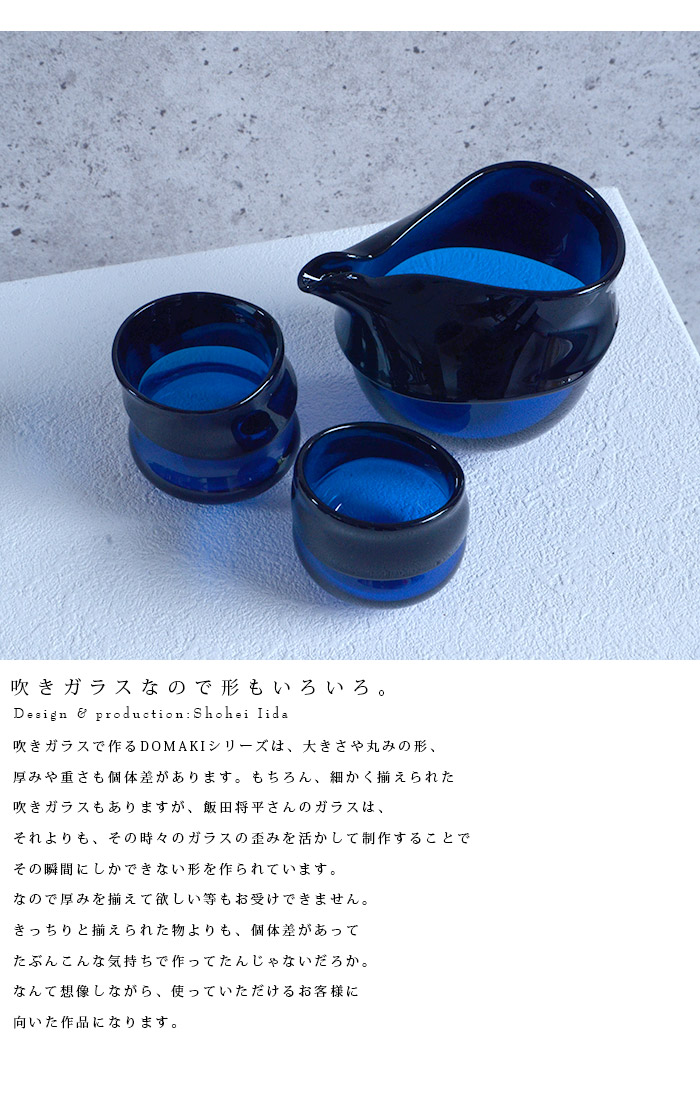 青と濃青の対比がおしゃれな飯田将平さんのDomaki 酒器揃。