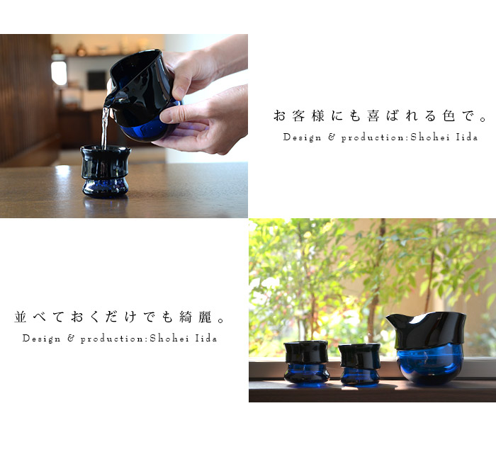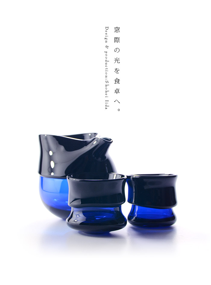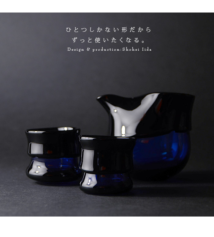 青と濃青の対比がおしゃれな飯田将平さんのDomaki 酒器揃。