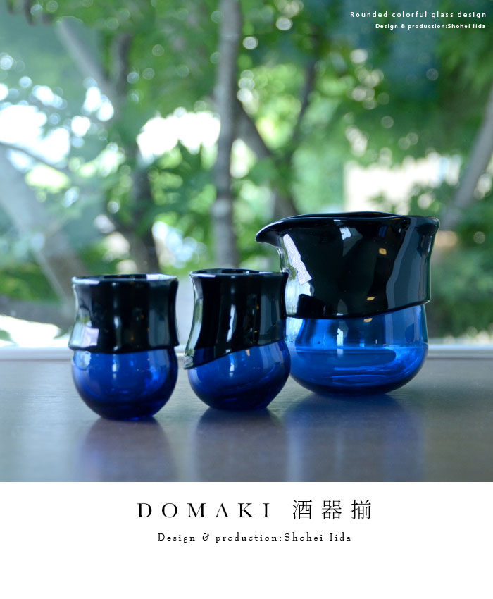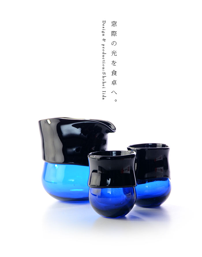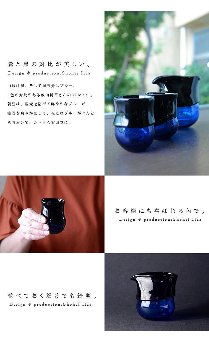 青と濃青の対比がおしゃれな飯田将平さんのDomaki 酒器揃。