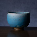 その作風は伝統を感じながらも独自の感性で現代に合う青茶碗。