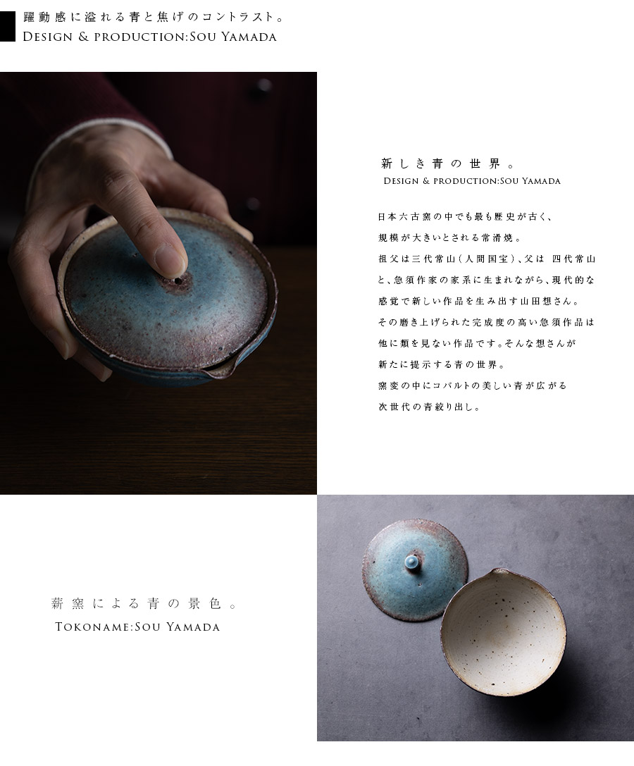 その作風は伝統を感じながらも独自の感性で現代に合う青絞り出し。