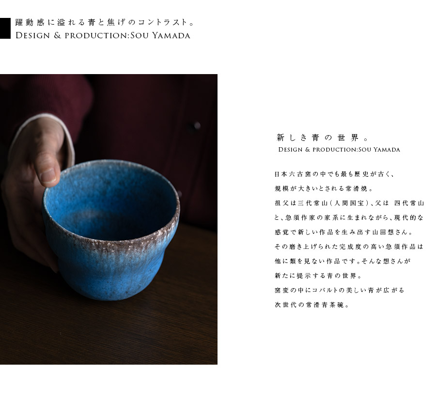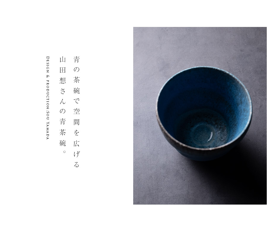 その作風は伝統を感じながらも独自の感性で現代に合う青茶碗。