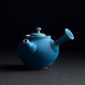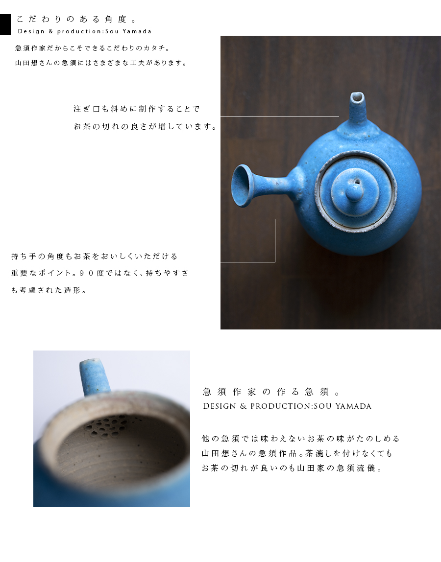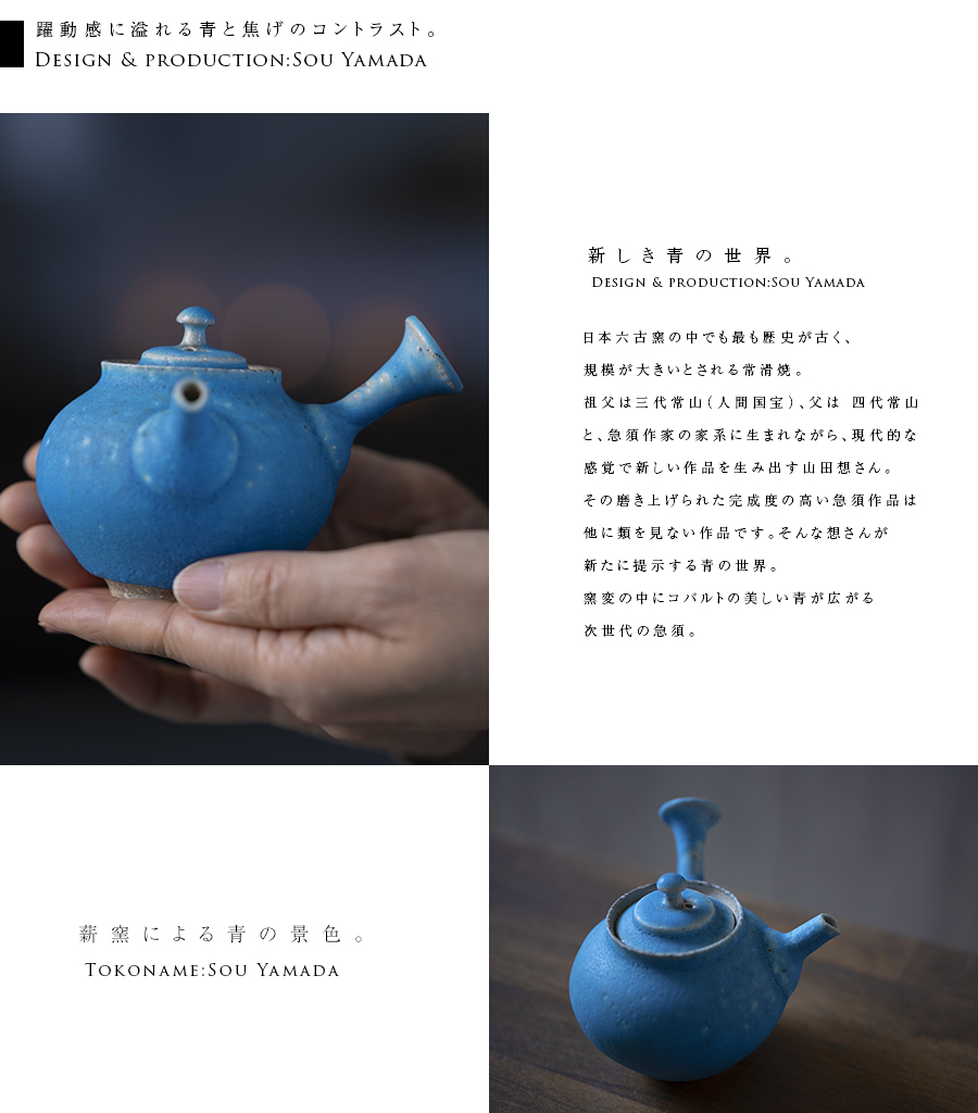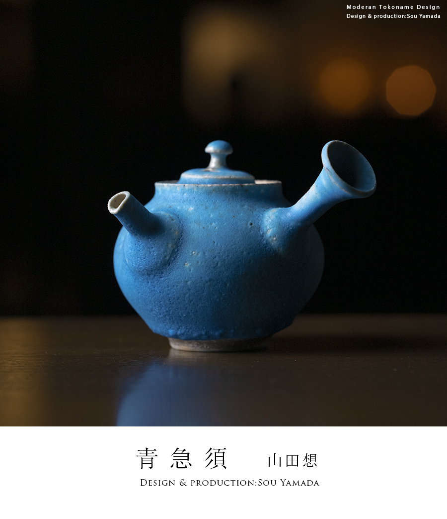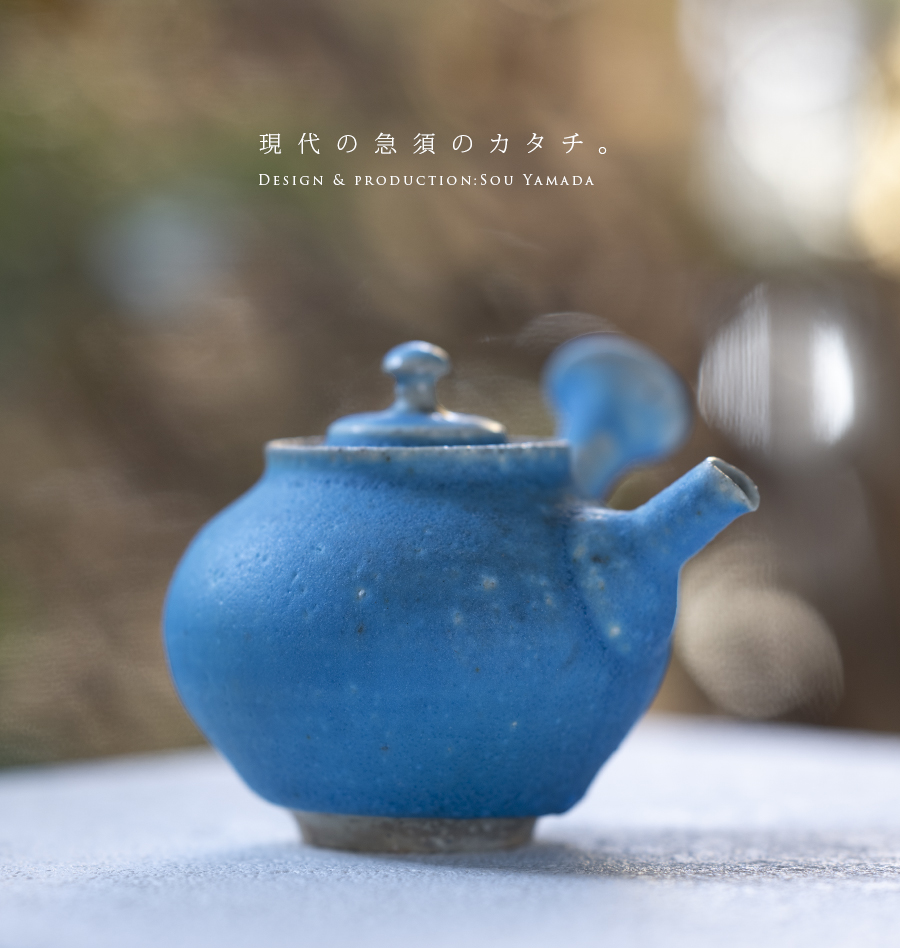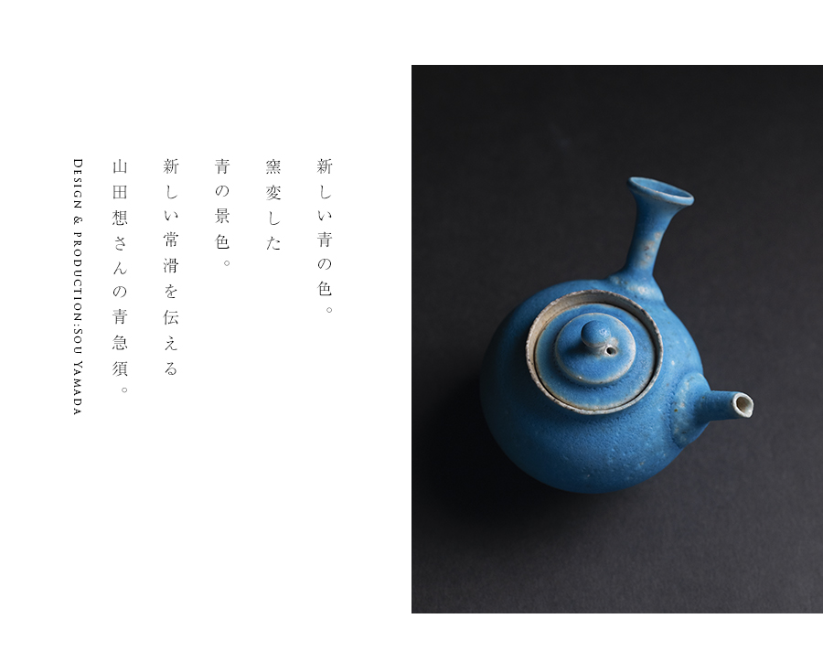その作風は伝統を感じながらも独自の感性で現代に合う青急須。