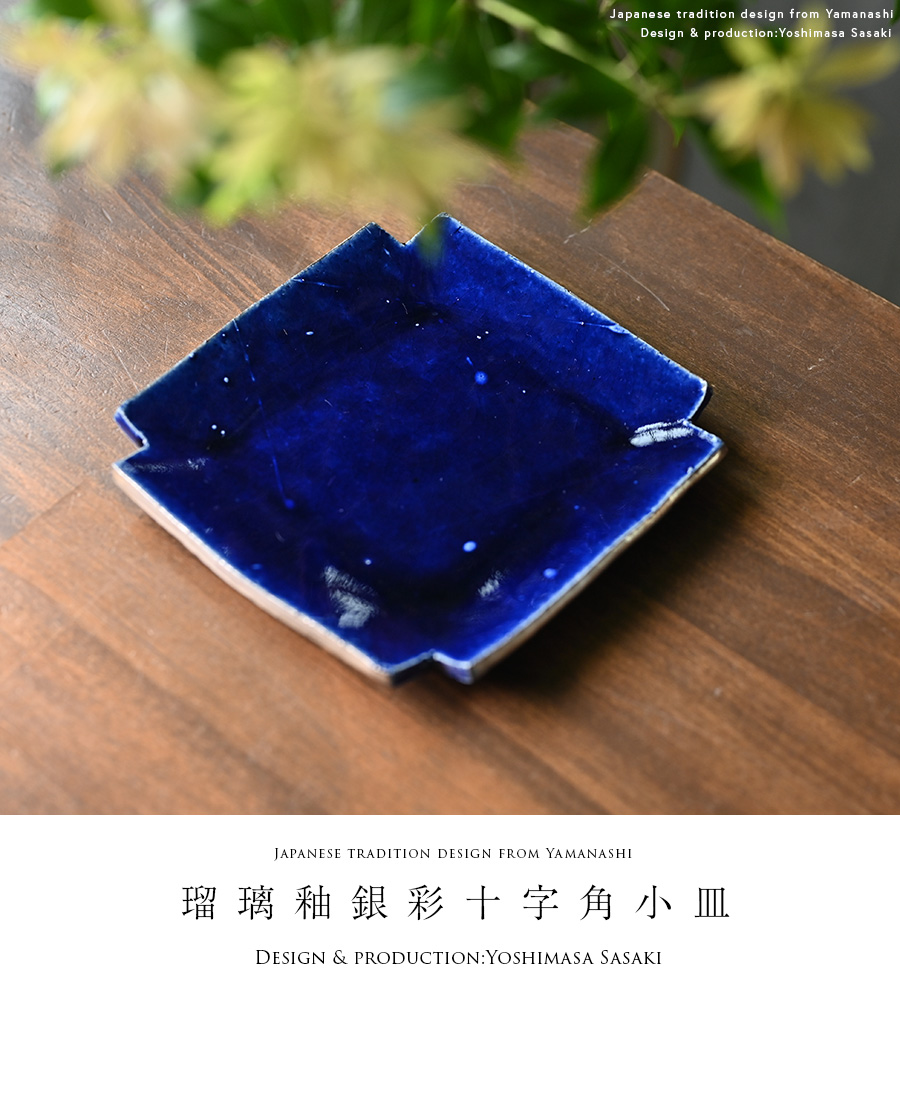 和食器 瑠璃釉銀彩十字角小皿(SS-110) 作家「佐々木好正」