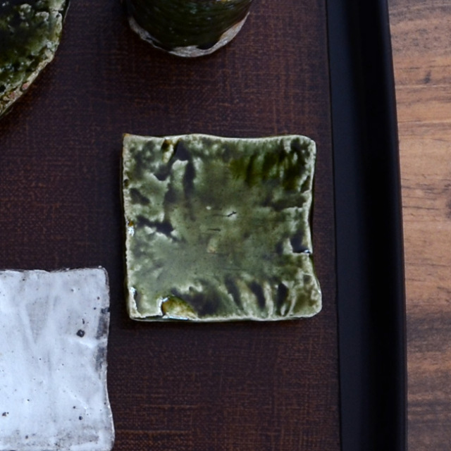 土の動きが見られる個性あふれる織部デザイン。