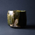 土の動きが見られる個性あふれる織部茶碗デザイン。