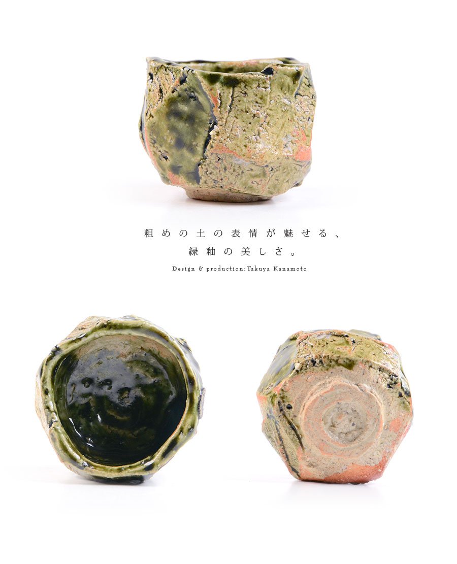土の動きが見られる個性あふれる織部ぐい呑デザイン。