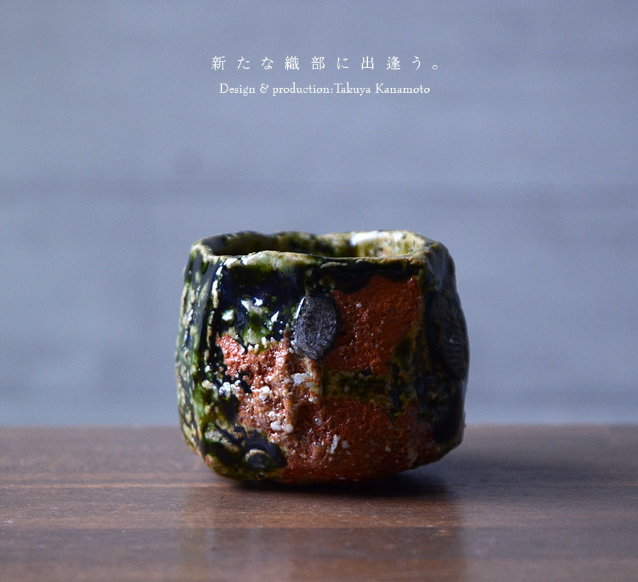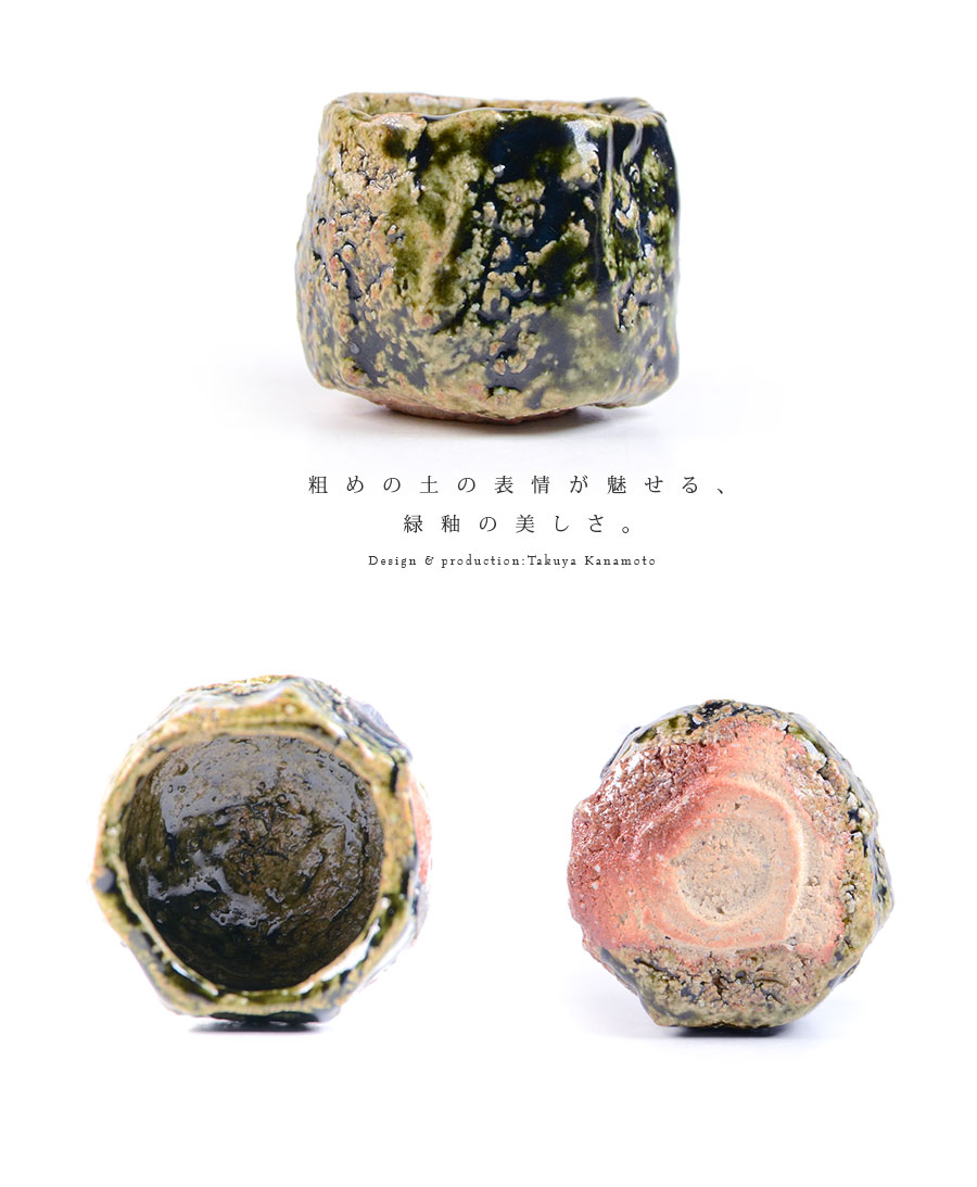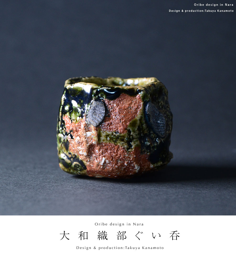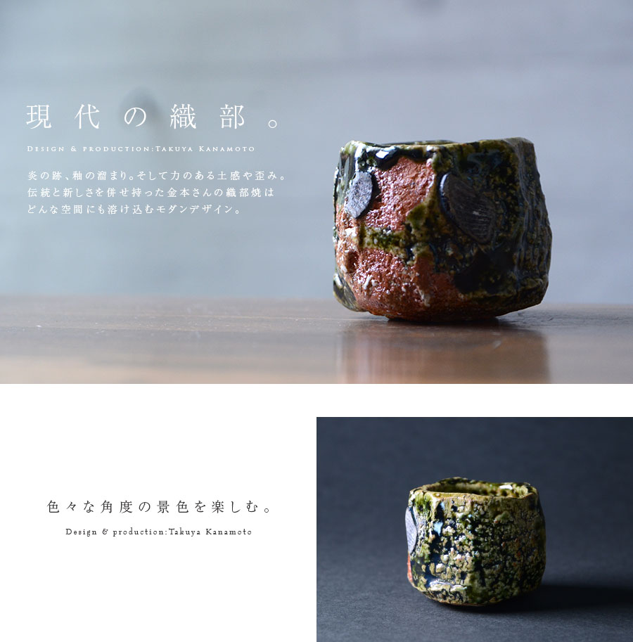 土の動きが見られる個性あふれる織部ぐい呑デザイン。