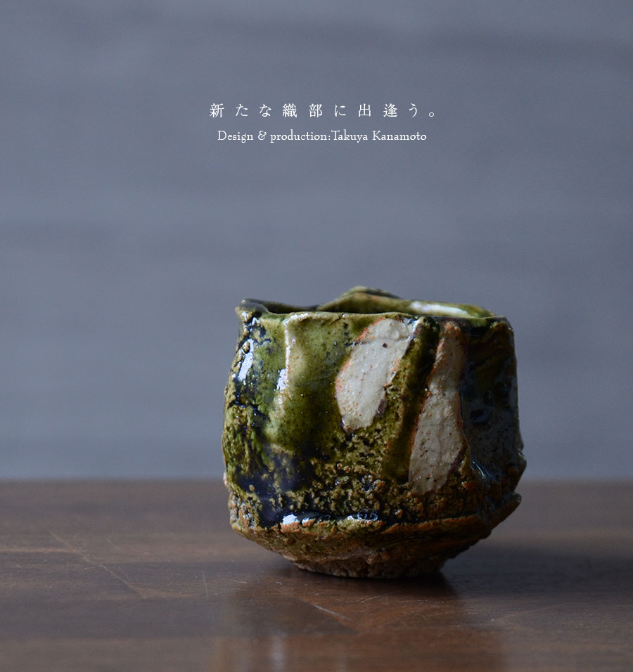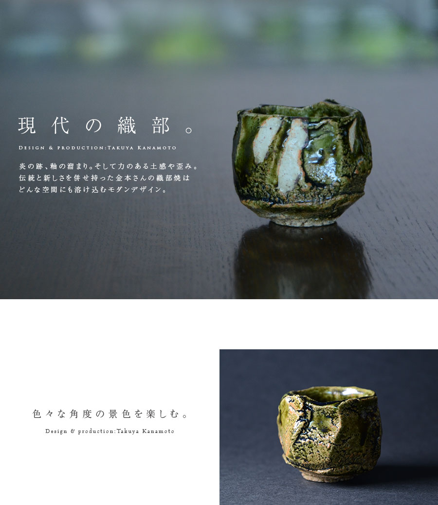 土の動きが見られる個性あふれる織部ぐい呑デザイン。