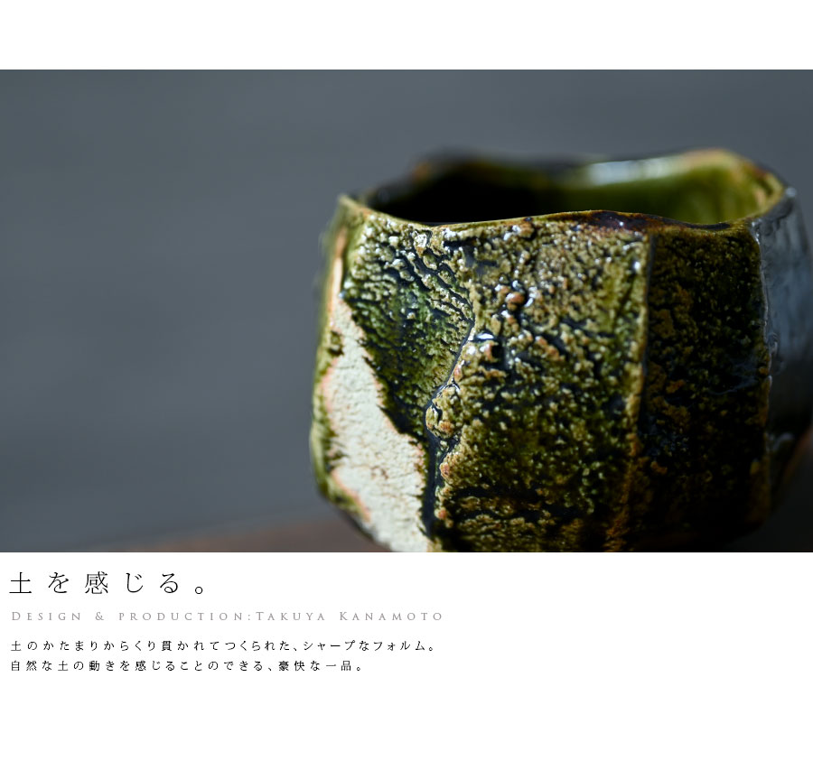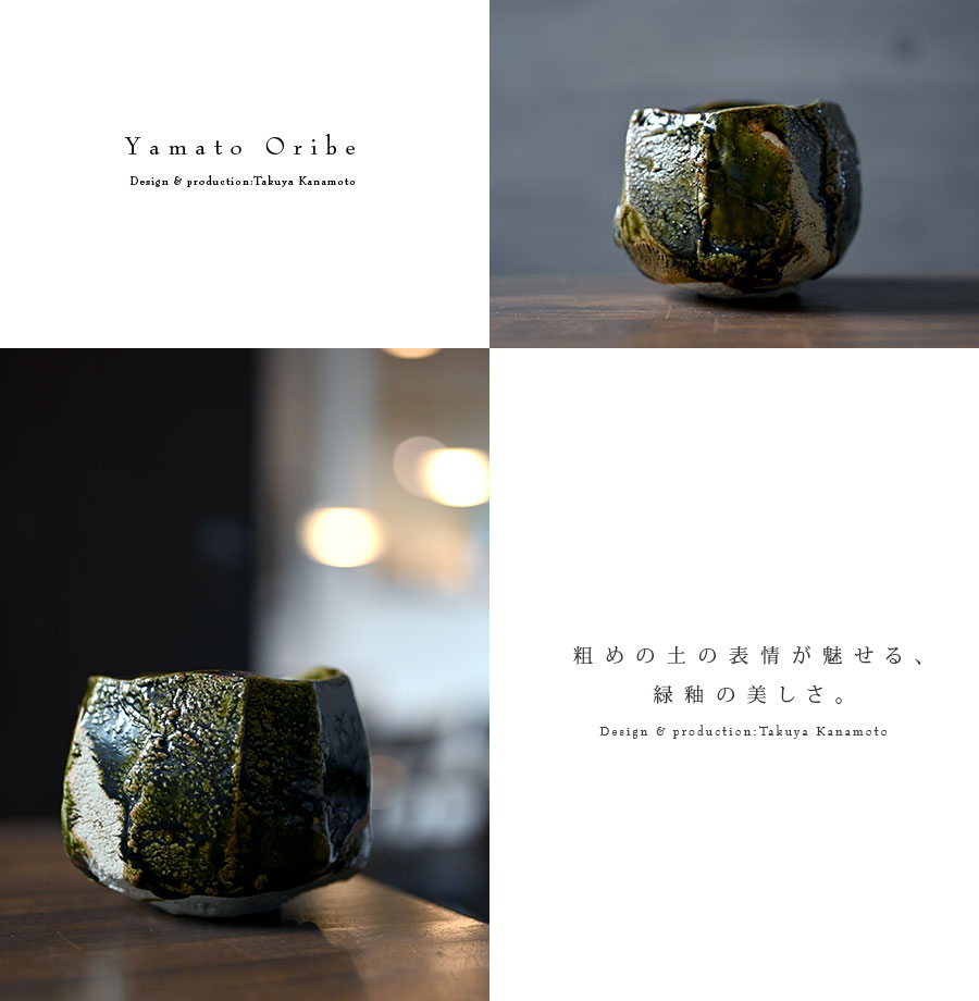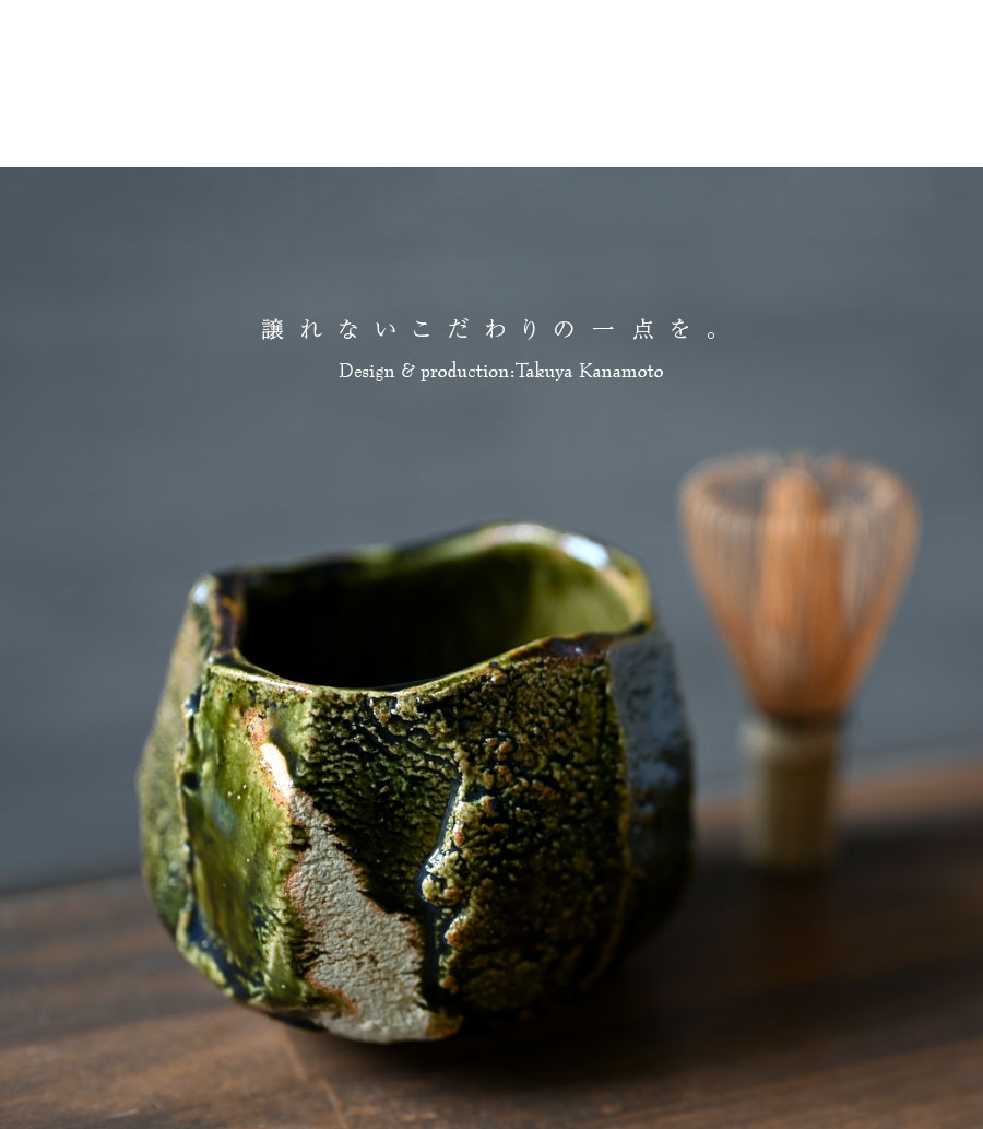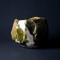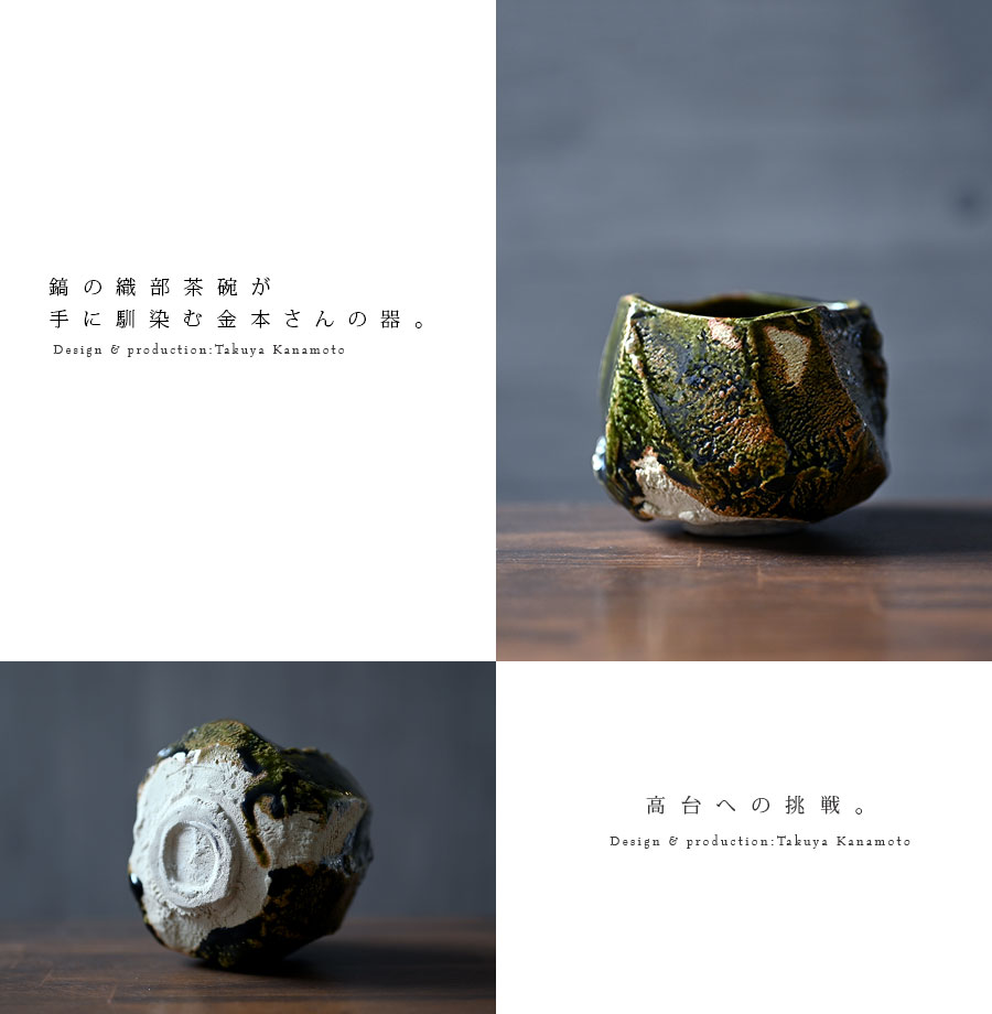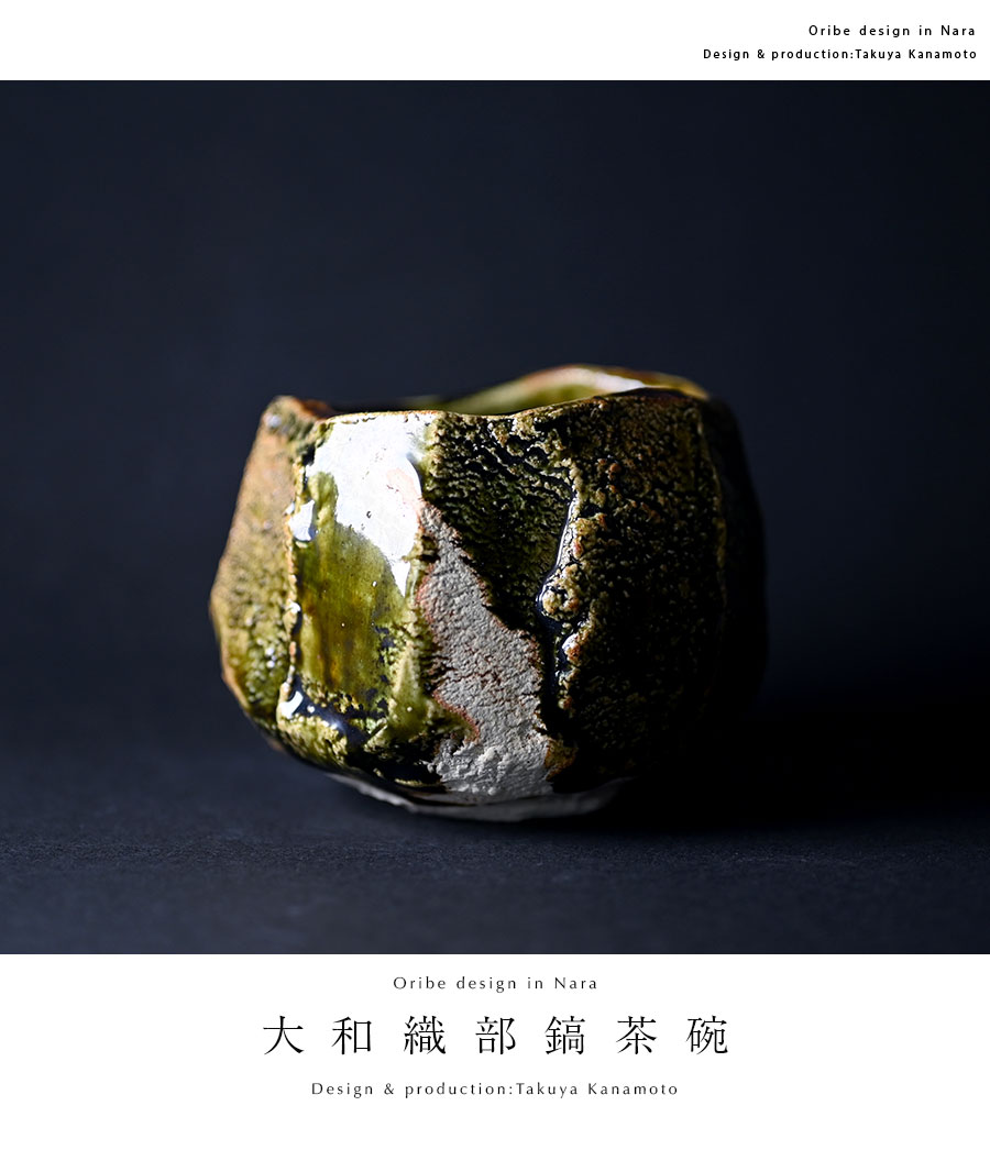 土の動きが見られる個性あふれる織部茶碗デザイン。