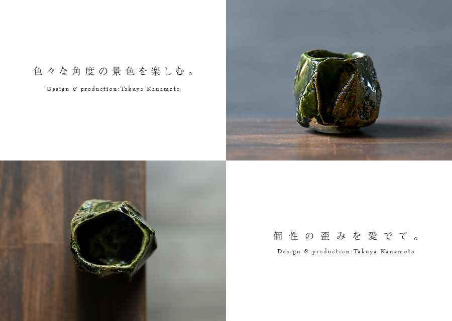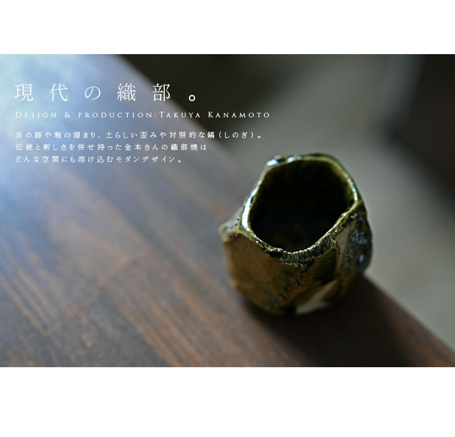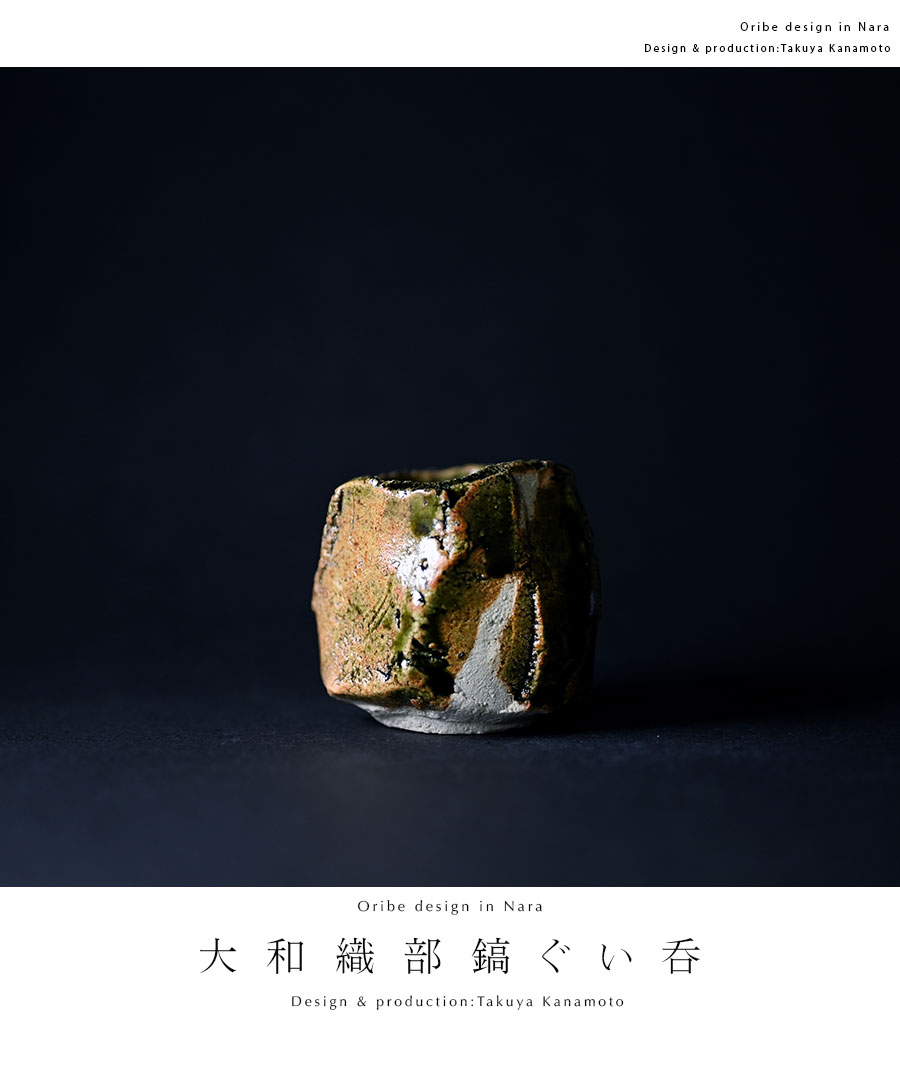 土の動きが見られる個性あふれる織部ぐい呑デザイン。