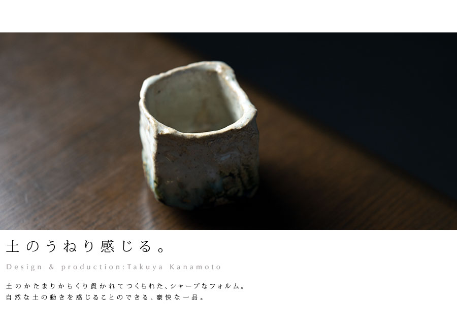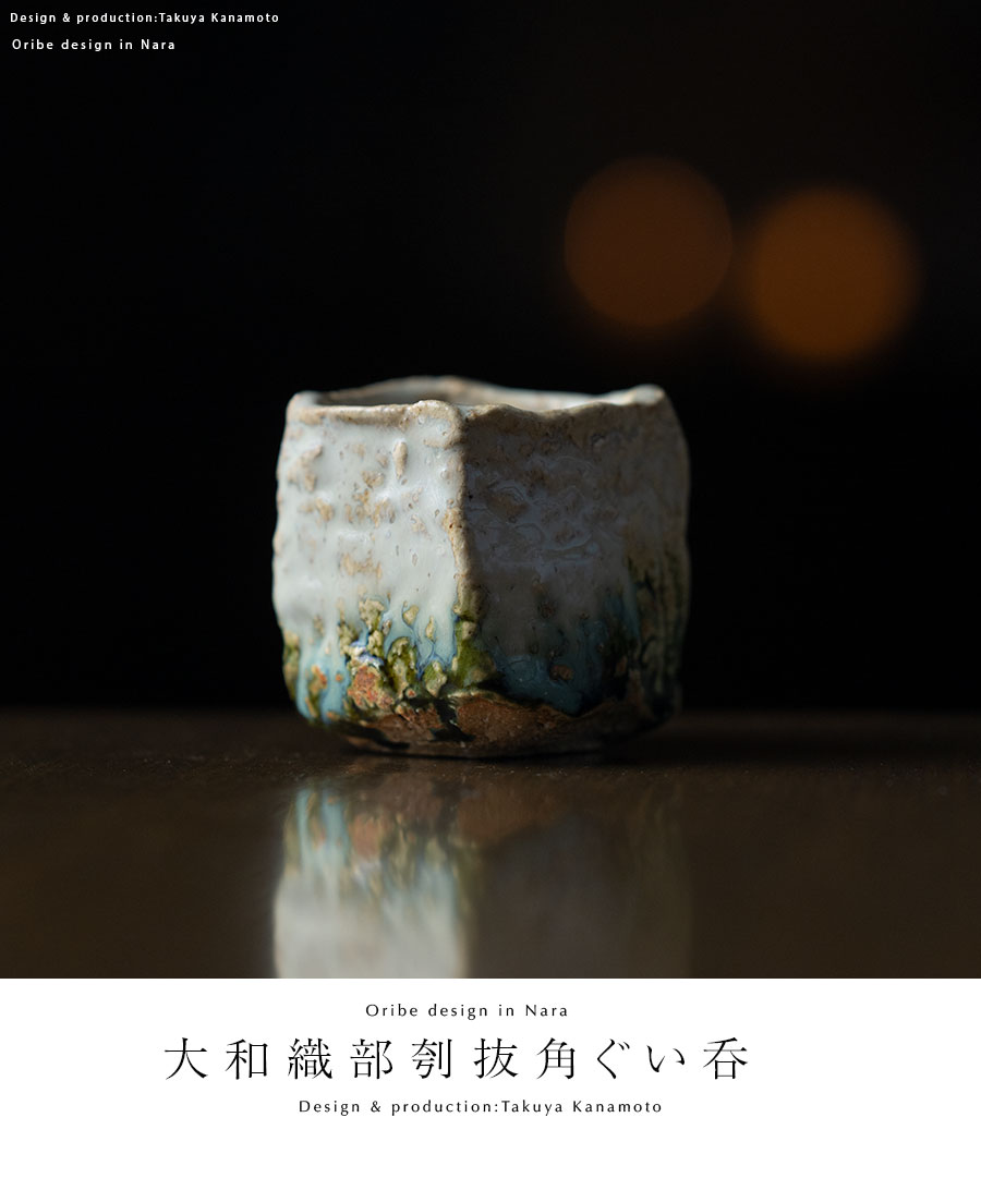 土の動きが見られる個性あふれる織部ぐい呑デザイン。