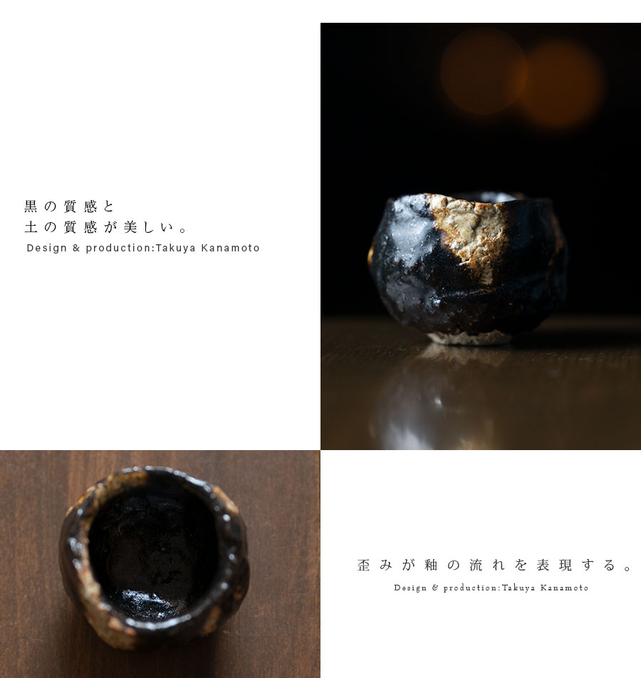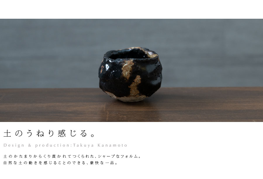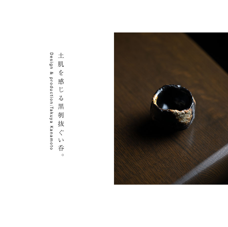 【共箱付】黒刳抜ぐい呑(TK-069)  作家「金本卓也」