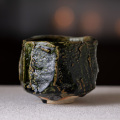 土の動きが見られる個性あふれる織部茶碗デザイン。