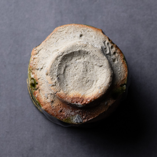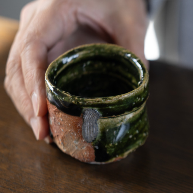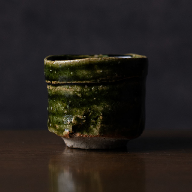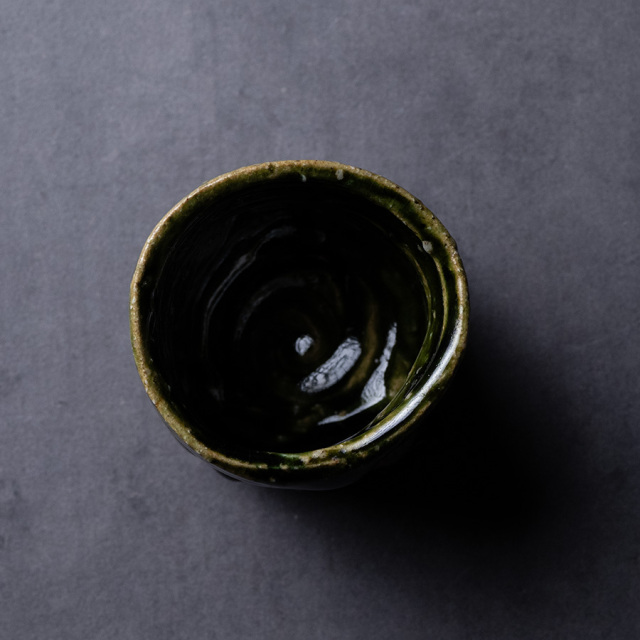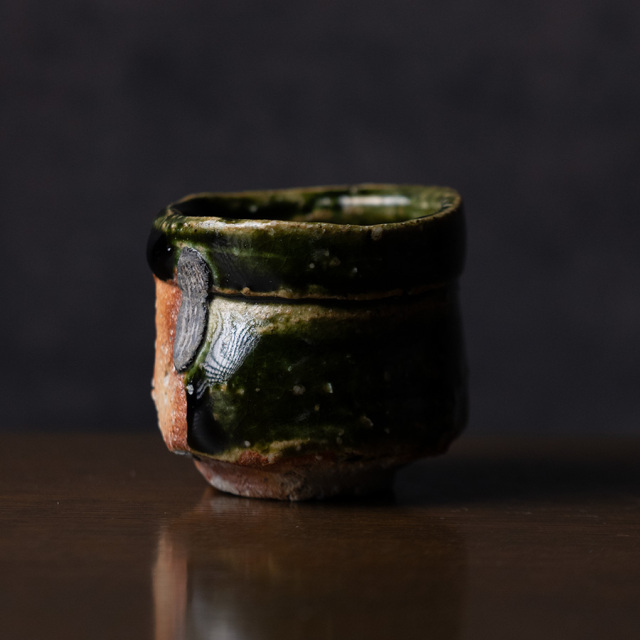 土の動きが見られる個性あふれる織部ぐい呑デザイン。