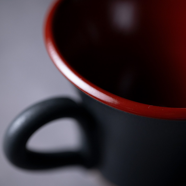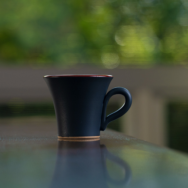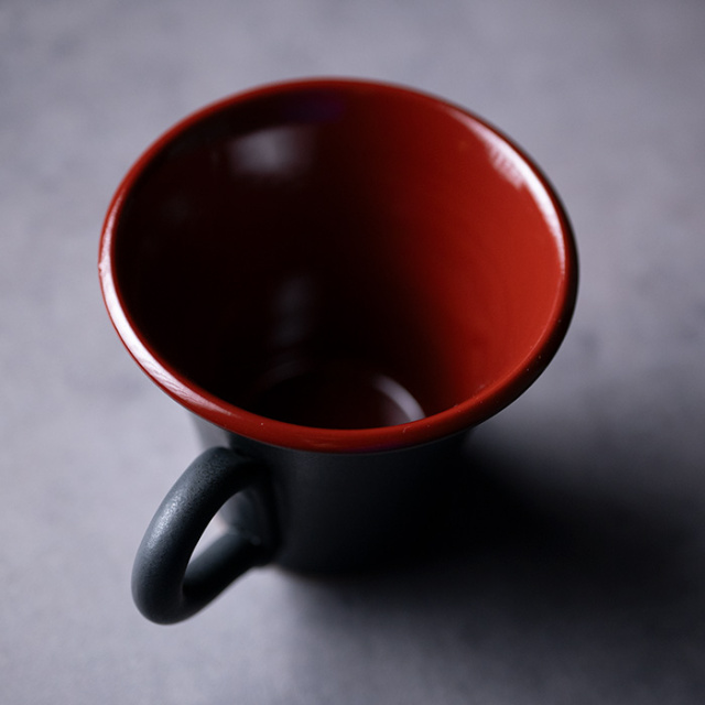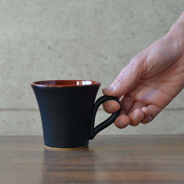 兵庫県で作陶する森野知子さんの黒釉赤彩マグカップ。