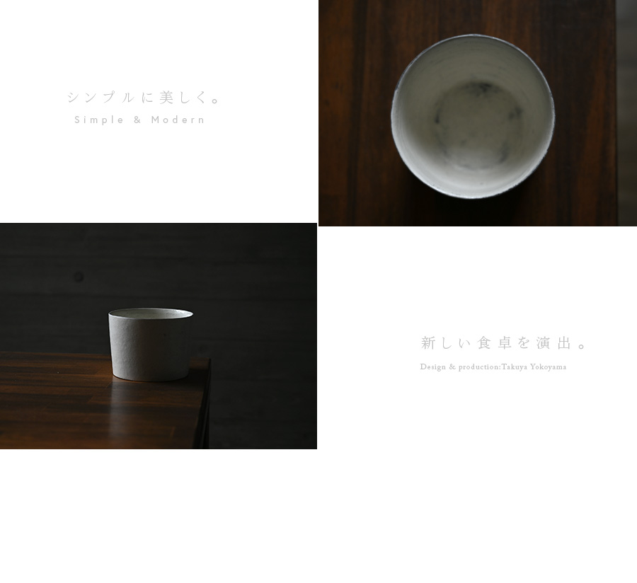 現代的な作品を生み出す横山拓也さんの粉引筒鉢。