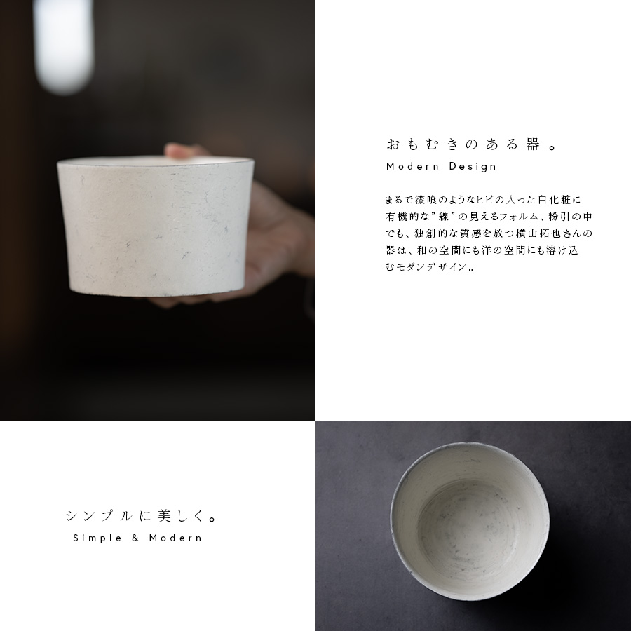 現代的な作品を生み出す横山拓也さんの白筒鉢。