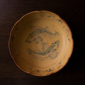 柚子手黄瀬戸魚文鉢(共箱付)  作家「瀬津義雄」
