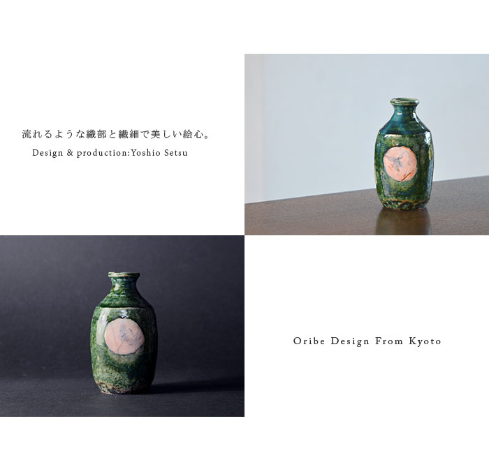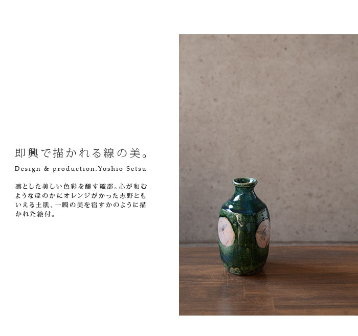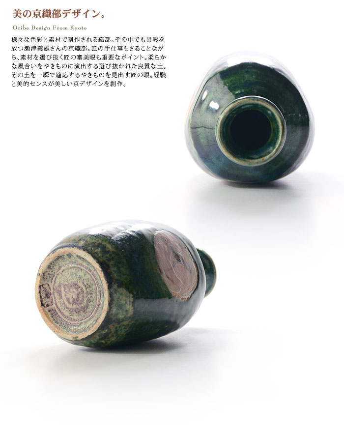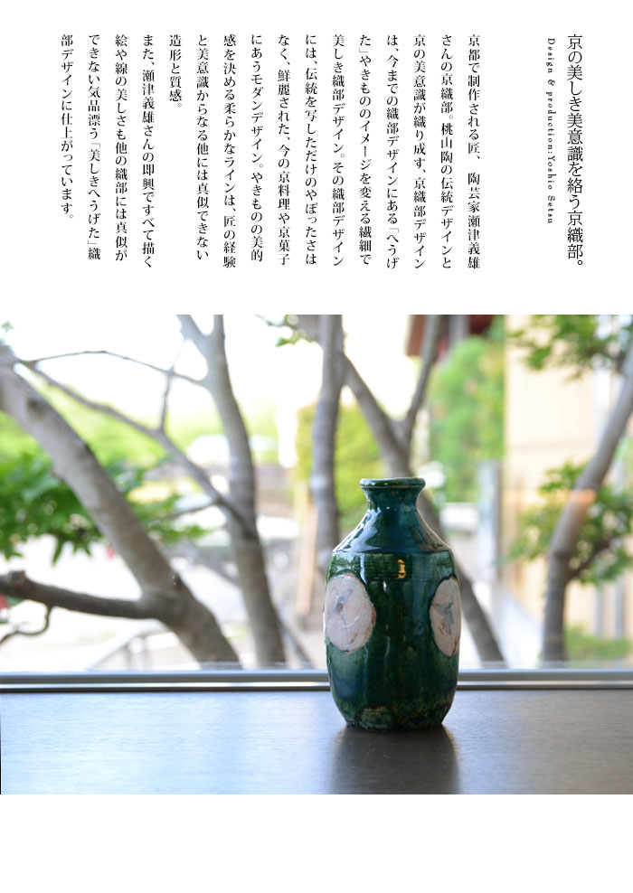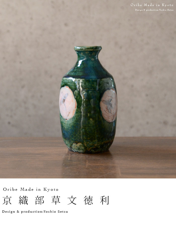 京織部草文徳利(共箱付A) 作家「瀬津義雄」