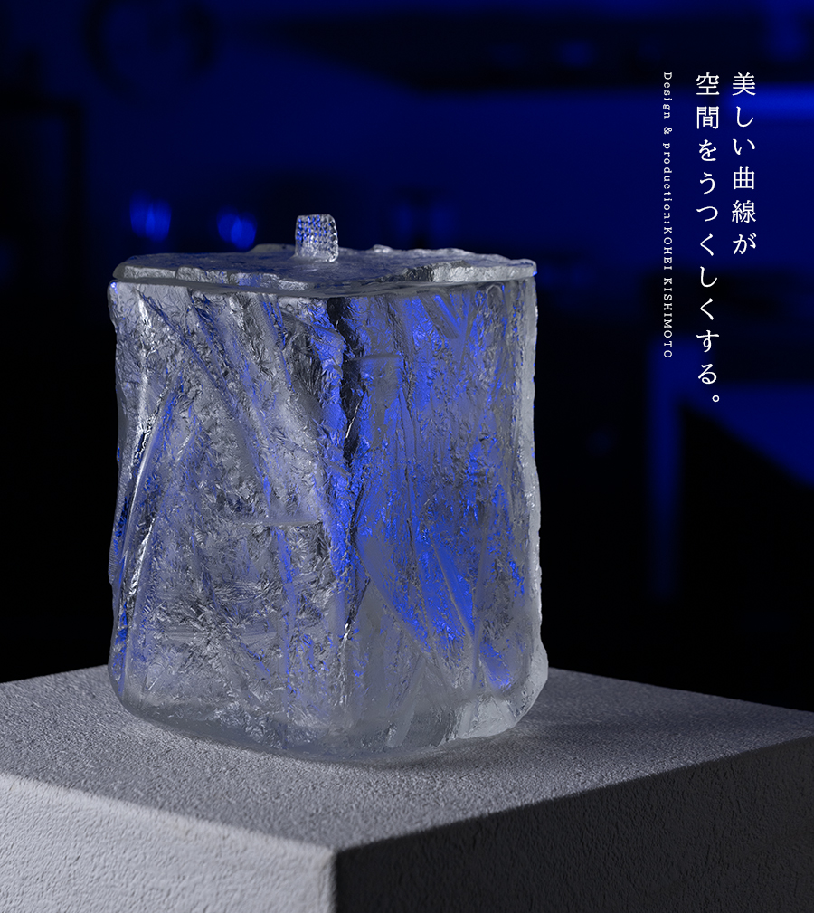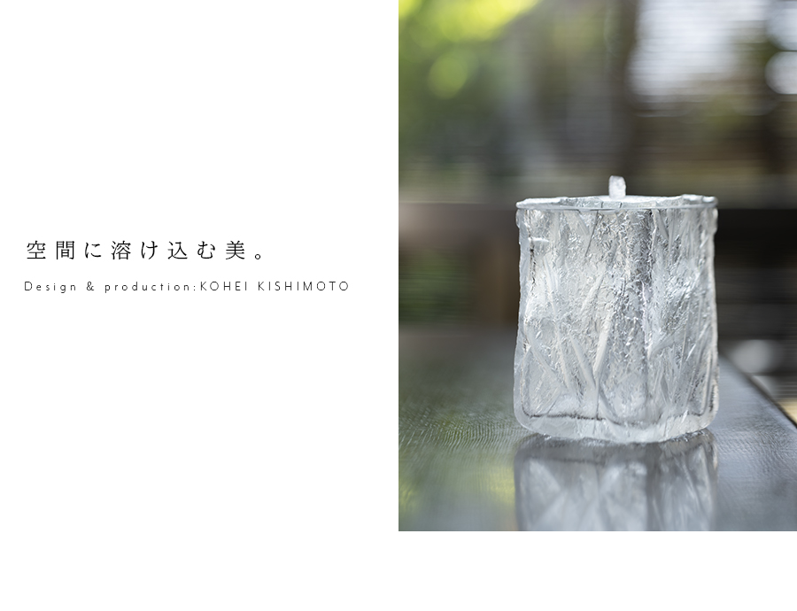 空間に美しい表情を与えるガラス作家:岸本耕平さんの茶道具、水指。