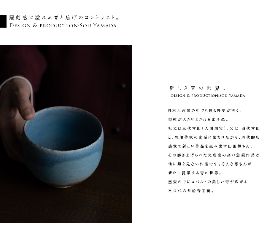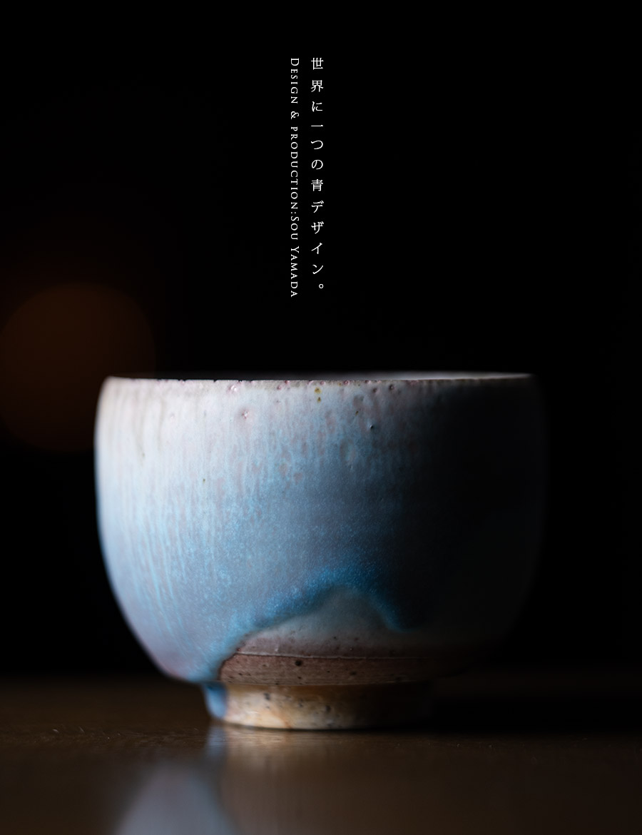 その作風は伝統を感じながらも独自の感性で現代に合う青茶碗。