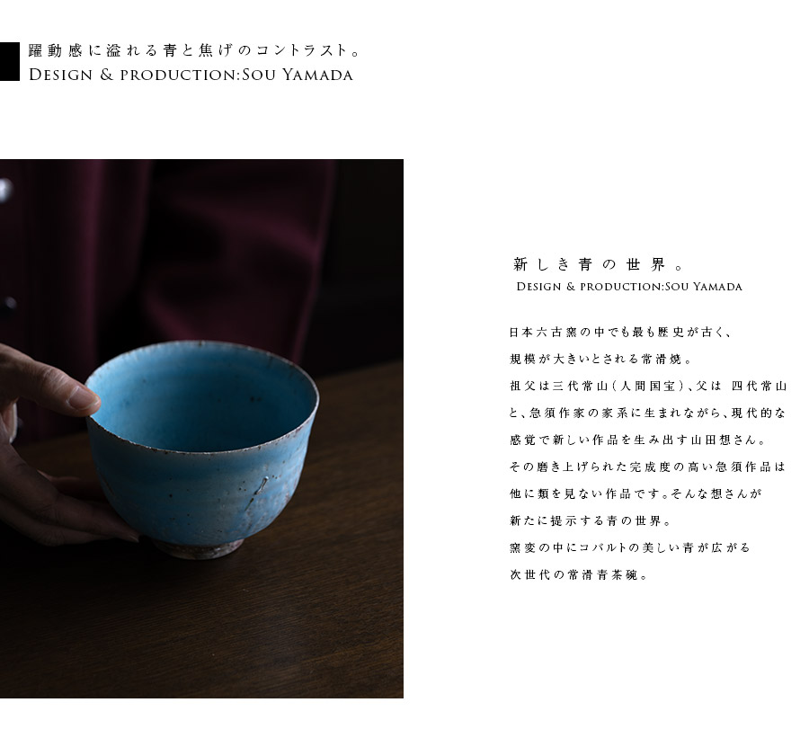 その作風は伝統を感じながらも独自の感性で現代に合う青茶碗。