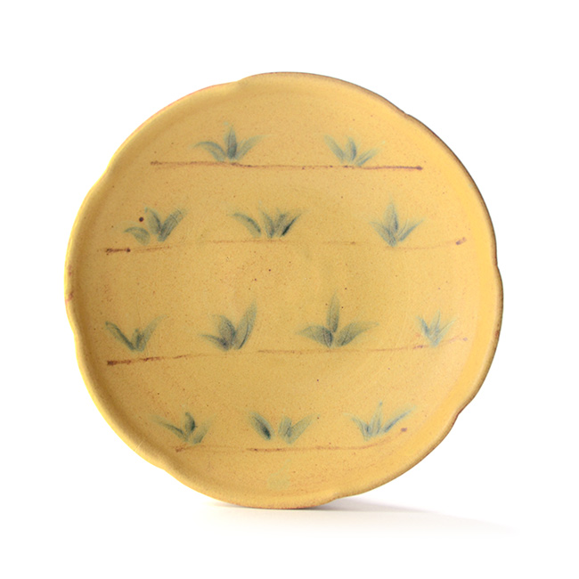 • 柚子手黄瀬戸草文鉢(共箱付)  作家「瀬津義雄」